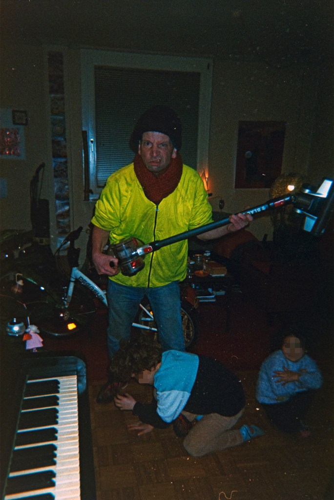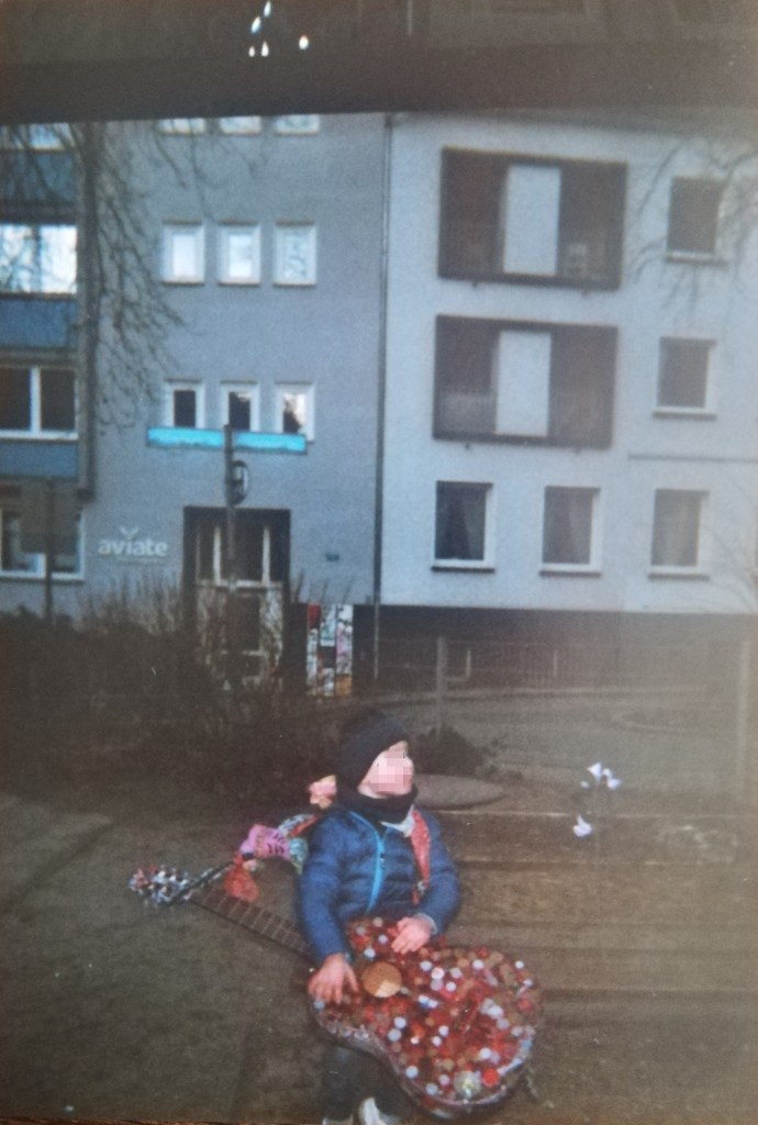 „Ist das denn so unschön geworden?“, frage ich. – „Es war die Hölle. Ich bin von der Polizei abgeholt worden. Aus dem Haus mit meinen drei Kindern. Das eine schöner als das andere. Ich bin von der Polizei abgeholt worden, wegen nichts!“ – „Habt ihr euch denn viel gestritten in der Zeit?“ – „Das war noch nicht mal Streit. Ich mein, das war turbulent. Wir haben alles zusammen gemacht. Wir haben die Kunstprojekte zusammen gemacht, wir haben die Auftritte zusammen gemacht. Ich hab für sie das Ganze – ihre Berufstätigkeit als Tanzlehrerin – alles! Wir waren ständig unterwegs, wir waren ständig auf der Bühne zusammen, immer die Kinder dabei, schwub, da kam ein Kind nach dem anderen. Die Zwillinge – schwub. Und ich so: ‚Dat schaffen wa locker! Ist überhaupt kein Problem‘ Wir gelten heute noch so im Viertel – da gibt’s ganz viele Eltern, die danach Kinder bekommen haben: ‚Wir haben die Kinder wegen euch‘. Ich so: ‚Bist du panne? War ich jetzt dabei oder was?‘ – ‚Nein, wir haben so gedacht, ich glaub, das funktioniert. Man kann die Kunst mit dem Leben vereinbaren. Man kann Kinder haben und trotzdem weiter lieben und leben.‘ Das kann man wirklich, das geht. Das ist natürlich nen bisschen anstrengend, ist ja klar, aber das geht! Volle Kanne geht das! Ja. Genau das haben wir gemacht. Und lange, richtig lange. Fast 20 Jahre. So war dat. Also wirklich so ein symbiotisches Zusammenleben, also alles! Arbeit, Alltag, Blagen, Familie, Kunst. Volles Brett! Aber immer so aufm Sprung – was ich ja liebe! Italienisch, weißte?“ Er erzählt in einem Tempo, durcheinander, vor und zurück, dass ich das Gefühl bekomme, ich spüre beinahe die Intensität der Beziehung, das Viele, das Schnelle. „Das war vielleicht auch ein bisschen zu viel und wir haben das irgendwie nicht gemerkt. Das ist noch gar nicht aufgearbeitet, also nicht im traumatischen Sinne, aber wir haben einfach richtig viel gemacht, richtig viel. Ich merk dat erst jetzt, wie viel wir gemacht haben, richtig krass. Wir haben die ganze Stadt irgendwie so – also halb Europa haben wir platt gewalzt mit Liebe und Kindern.“ Die Kinder waren immer dabei, bei allen Auftritten, auf allen Bühnen. „Mich hat nie ein Kind irgendwie angestrengt. Aber gar nicht. Und ich hab auch nie gedacht: ‚Wie krieg ich die ernährt?‘ oder irgendwie sowas. Das geht von selbst! Und wenn die geliebt werden, weißte? Und wenn die sich wohlfühlen, das ist unglaublich. Das ist erledigt das Thema, ich habs geschafft. Deswegen mach ich mir auch keine Sorgen. Ich bin jetzt nicht der verlassene Vater. Sondern erstens lass ich die gewähren, zweitens vertrau ich der Mama, drittens … haben die ne richtige Scheißphase. Die haben zwei Jahre geklaut gekriegt von dieser Corona-Grütze. Was kommt danach zur Belohnung? Putin. Die sind aber sowas von stabil, weißte? Der größte Schutzschild auf dieser Welt ist Liebe. Wenn du als Kind geliebt worden bist, das verlässt dich nie mehr. Da kann dir passieren was will. Krebsdiagnose oder Vergewaltigung, oder irgendwie sowat, so ne Scheiße. Das perlt an dir ab, wenn du weißt, wer du bist, wenn du weißt, wo du hingehörst. Nämlich in die Welt der Liebenden.“ Voller stolz erzählt er von seinen Kindern, wie talentiert sie sind, wie empathisch und voller Liebe. Dass die Lehrerin sagt, sie habe noch nie jemanden gehört, die so gut singen könne, wie seine Töchter. Dass sie so gut tanzen können, dass sie Weltstars werden könnten. „Also, der Job ist erledigt, wir können einfach nur noch saufen.“ Er lacht und prostet mir zu.