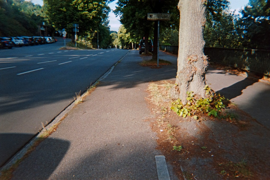 Auf dem nächsten Bild ist die Straße zu sehen, die Gideon gegangen ist, um zu seiner Unterkunft zu kommen. Damals verbrachte er viel Zeit am Baldeneysee. Zweieinhalb Jahre hat er in dieser Unterkunft gelebt, sechs Jahre in Unterkünften in Essen insgesamt. „All my time in Essen I lived in Heim.“ Ich frage ihn, warum er nach Essen gekommen ist. Das war nicht seine eigene Entscheidung, erzählt er. Als er in Deutschland ankommt, wird er nach München gebracht, dann nach Dortmund, nach Düsseldorf, nach Solingen, bis er schließlich nach Essen kommt, wo er registriert wird und seinen Asylantrag stellt. „It’s them who choose for us.“ Ich frage ihn, ob er lieber woanders leben würde. Wenn er könnte, würde er nicht in Essen wohnen, ja. Der Druck und Stress, den er von der Ausländerbehörde erfährt, sind zu groß für ihn.