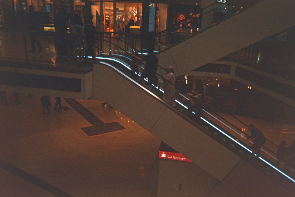 Die nächsten Bilder zeichnen seinen Weg nach, vom Essener Hauptbahnhof, durch die Innenstadt, über den Kennedyplatz, den Limbecker Platz. Hier geht er oft hin, schaut, ob vielleicht etwas runtergesetzt ist, was er kaufen kann. Er geht gerne im Stadtteil spazieren, ist gerne draußen. Als er hierhingezogen ist, hat er angefangen, Fußball zu spielen. Aufgrund seiner psychischen Erkrankung hört er jedoch wieder auf. Ihm fällt es schwer, sich verbindlich für das regelmäßige Training anzumelden, da er oft nicht weiß, wie es ihm an dem Tag geht. Wenn seine Symptome stark sind und es ihm schlecht geht, kann er nicht trainieren; die Aufforderungen, seiner Mitspieler, zum Training zu kommen, setzen ihn unter Druck. Eigentlich würde er sich gerne in einem Fitnessstudio anmelden, selbst entscheiden, wann und wie lange er trainiert. Allerdings weiß er nicht, ob seine Papiere bei der Anmeldung akzeptiert werden. „I don’t know, but I will try it and see.”