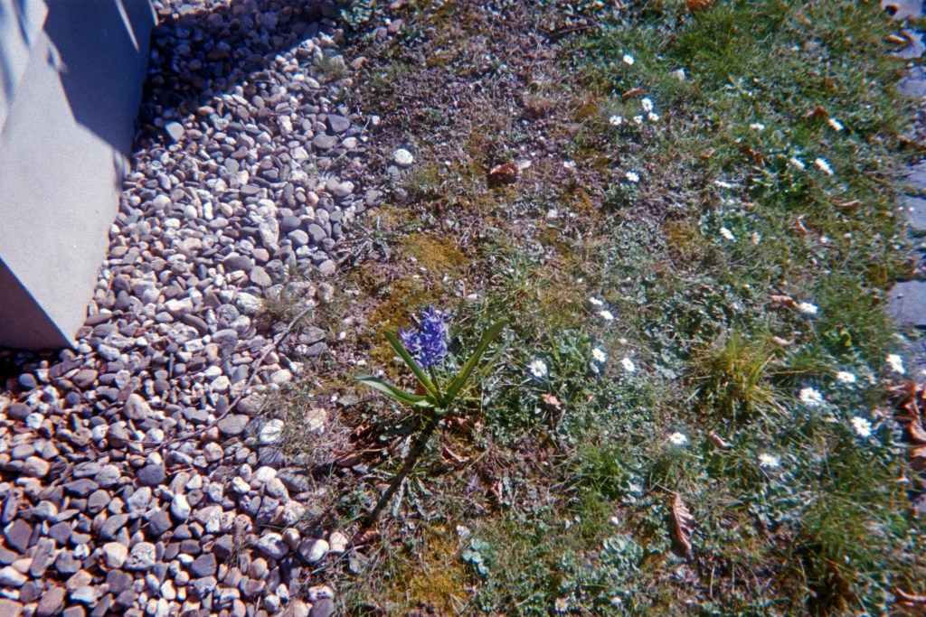 Schnell blättert sie weiter. Auf dem nächsten Bild ist eine blühende Blume auf einer Wiese zu sehen. „Unter anderem hab ich Fotos geschossen so wie das oder das, um einfach auch positive Aspekte, Positiv-Trigger zu setzen.“ Ich versuche, einen Schritt zurückzugehen, auf eines der vorangegangenen Bilder einzugehen. „Kannst du ein bisschen was zu dem Projekt mit den Hochbeeten erzählen?“ – „Was willst du denn da wissen?“, fragt sie skeptisch. „Also was du da gemacht hast.“ – „Das ist ne Kreativwerkstatt. Also das hat mir mein Arbeitsberater – er hat zu mir gesagt: ‚Sie müssen im Moment noch nicht arbeiten, denn wer weiß, was Ihre Amnesie noch alles hochbringt.‘ Also der weiß das auch. Und da hab ich nur zu ihm gesagt: ‚Ja nun, wenn ich den ganzen Tag zuhause sitz und mir die Birne explodiert, bringt das auch nichts weiter. Dann hat er mich fürs erste in die Kreativwerkstatt gebracht. Und da hat die Frau, die das leitet – die weiß das halt auch – und die hat mir dann auch immer so Aufgaben gegeben, die nicht unbedingt standardmäßig sind, weil ich kann gut schleifen und Möbel zusammenbauen und so. Stühle abschleifen, ich hab Boxen gebaut für so ne Hilfsorganisation, da wo die ihr Zeug reinlegen können und alles sowas. Die hab ich auch selber bemalt und dekoriert. Da hab ich auch n richtiges Lob für gekriegt.“ Wieder blättert sie schnell weiter. Ein Bild von der Tram-Haltestelle, von der sie fährt, wenn sie nicht zu Fuß geht.
