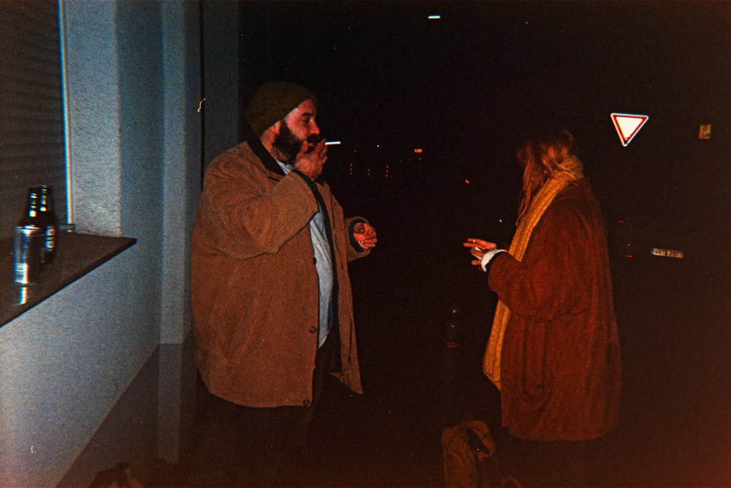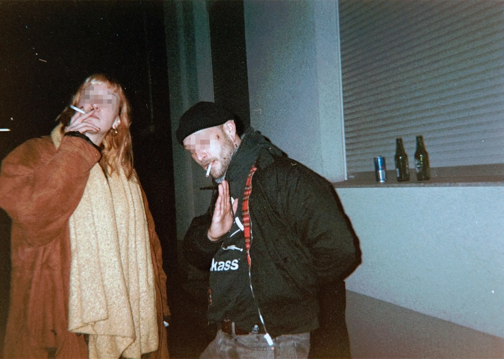 Nicht alle Bilder wurden entwickelt, einige fehlen ihm. „Schade, ich hab meinen Tisch und alles fotografiert. Son paar Partybilder.“ – „Willst du mir den Tisch beschreiben?“, ich lache. „Ja, der Tisch stand mit verschiedenen … Befreudungsmitteln voll, und Bier und Zigaretten.“ Er spricht zögerlich und grinst. „Ich glaub, wir können ruhig über Drogen reden, das ist okay“, sage ich. Wir lachen. „Okay. Joa, vielleicht waren da auch Drogen drauf.“ Ich frage Philipp, wie er konsumiert. „Querbeet. Und gerne viel. Weil mir das einfach guttut. Drogen sind son Bewusstseinsstatus von Feierabend, Urlaub haben. Das ist einfach schön. Ich konsumier regelmäßig unregelmäßig, sag ich mal. Hab immer mal ne Pause. Achte da manchmal nicht drauf. Und dann merk ich dat. Nen richtig oller Entzug ist das dann. Echt so ne Woche so mega müde und so. Aber ansonsten ist das eigentlich ganz gut, wenn man so einen Tag mal durchmacht in der Woche, dann passt das ganz gut, das kann man ganz gut auffangen.“ Ich frage ihn, seit wann er konsumiert. „Seitdem ich in Bochum bin. Also vorher ja, aber so drei, vier, fünf Mal im Jahr vielleicht. Seitdem ich in Bochum bin, bin ich Konsument geworden.“ – „Und wieso?“ – „Weil meine Freunde alle Drogen nehmen hier. Alles Drogenjunkies.“ Er lacht. Aktuell passen die Drogen ganz gut in sein Leben, stellen kein Problem dar. „Ich mach mir nur manchmal Gedanken, ob die Phasen des Down-Seins dadurch – oder des Unproduktiv-Werdens – damit irgendwie verknüpft sind.“ Er ist sich nicht sicher. „Ich seh Drogen positiv. Positiv mich widerspiegeln auch. Wie war ich früher, wie bin ich jetzt? Was fehlt dir, damit du wieder Philipp bist und dich lebendig fühlst? Das hab ich alles durch Drogen wiedergefunden. Und ich machs einfach gern. Was ich dann aber auch voll versteh: Ich hab auch nen nüchternen Freundeskreis und die wissen, dass ich Drogen nehme, finden das aber nicht gut. Das ist aber auch ne Perspektive, die ich gut finde, weil das ja nichts ist, was ich jetzt unbedingt –“, er stockt. „Also ich will das schon ein Leben lang machen, mal irgendwie nen bisschen Ketamin oder so ziehen und nen Joint rauchen oder was auch immer. Oder so psychedelische Trips – klar, wenns passt, da muss ja auch Raum für sein und es muss einem gutgehen. Also ich sag dazu ‚Ja‘, verstehe aber auch das Nein.“ Den nüchternen Freundeskreis schätzt er sehr, „weil das son nüchterner Bodenkontakt ist. Deswegen hab ich ja nüchterne Phasen.“