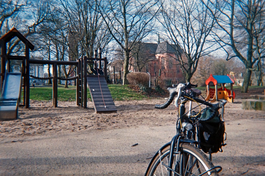 Gelsenkirchen, auf dem Weg zur Arbeit, mit dem Fahrrad. Ein Spielplatz, „irgendwo in Essen“