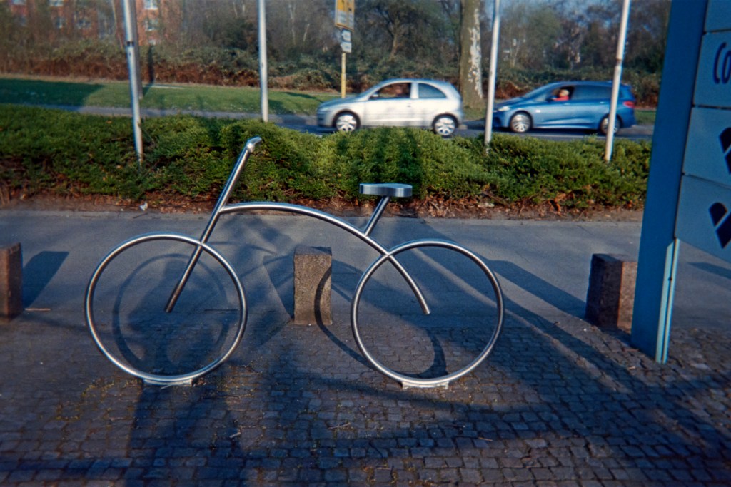 Das nächste Bild zeigt eine Skulptur in Form eines Fahrrads. „Als meine Kinder klein waren, als wir kamen nach Essen, haben sie immer versucht, damit zu fahren“, erzählt sie lachend. „Wir haben noch Fotos mit diesem Fahrrad.“