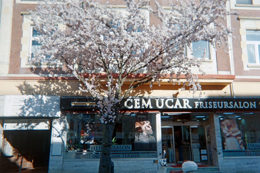 Ich lege das nächste Foto zwischen uns; es zeigt die Kirschblüten auf der Altenessener Straße. Sie ist gerne draußen, erzählt sie jetzt. „Ich mag nicht in der Wohnung bleiben. Den ganzen Tag in der Wohnung sitzen schaffe ich nicht. Ich muss raus, ich muss raus. Egal was, nur raus. Das ist aber auch so passiert nach meinem Mann.“ Ich frage sie, wie er als Person war. Sie überlegt. „Er ist auch viel für Sport, er hat mit meinem Sohn alle Sportarten gemacht, beigebracht. Hat ihn dorthin gebracht. Er war so der sportliche Typ. Viel Fahrrad auch.“ – „Habt ihr das dann auch viel zusammen gemacht, so Fahrradfahren und sowas?“ – „Eigentlich hat er mehr mit dem Kind gemacht. Für mich war das zu anstrengend. Sie fahren richtig sportlich und ich bin wie Ballast, dann können sie nicht weiterfahren. Das hat eigentlich nie geklappt.“ Wir sprechen noch weiter über die Zeit in der Kleinstadt. „Hast du auch gearbeitet oder warst du hauptsächlich mit deinem Sohn zuhause“, frage ich. „Ich habe ein bisschen gearbeitet, aber nicht viel. Am meisten war ich Hausfrau.“ Sie fährt fort: „In Russland war ich im Finanzamt tätig, aber hier natürlich nicht. Ich war im Altersheim, ein paar Stunden, als Hauswirtschafterin, aber das ist …“, sie lacht. Ich frage nach, warum sie ihren eigentlichen Beruf hier nicht ausüben konnte. „Zuerst Sprache, dann auch das Kind. In dem Alter ein Kind kriegen und auf den Beruf konzentrieren – ich war schon fast vierzig. Vielleicht mit viel Mühe kann man was erreichen, aber dann muss man diese Mühe vom Kind ablenken. Eins bleibt auf der Strecke, Kind oder Beruf. Besonders in diesem Alter.“ Ich frage sie, ob es okay so für sie ist oder ob sie das manchmal bereut? „Ich sage mir: ‚Es ist so, wie es ist.‘ Weil diese Gedanken machen nur krank. Das ist alles Spekulation: dies, das, dies. Natürlich treibe ich diese Gedanken weg. Ich sage mir: ‚Warum tust du dir weh? Es ist sowieso vorbei, es ist so wie es ist. Versuch mal JETZT was: leben, bringen, machen, sowas.‘“ – „Ich glaube, das ist eine gute Einstellung“, sage ich. „Das ist eine Lösung suchen für weiterleben“, korrigiert sie.